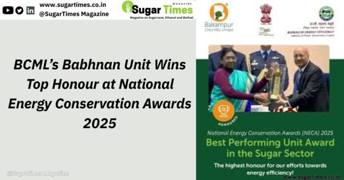 Balrampur Chini Mills Limited (BCML) has achieved a major milestone, with its Babhnan Unit being awarded the Best Performing Unit in the Sugar Sector at the prestigious National Energy Conservation Awards (NECA) 2025.