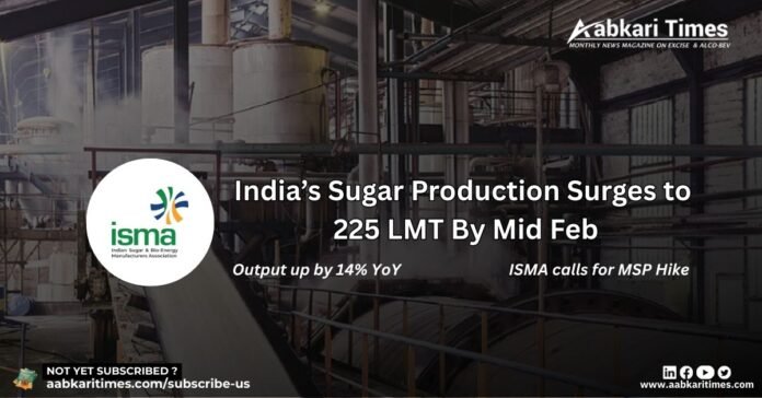 India’s Sugar Output Surges to 225 LMT by Mid-Feb; ISMA Flags Need for MSP Revision